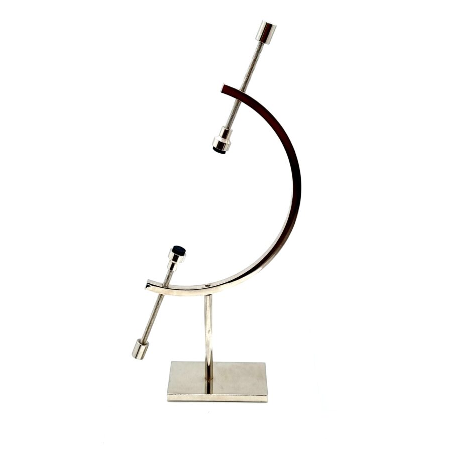 Kovový stojan vysoký 15 cm, maximálne rozpätie minerálu (vloženého do stojanu) – 7,5 cm.