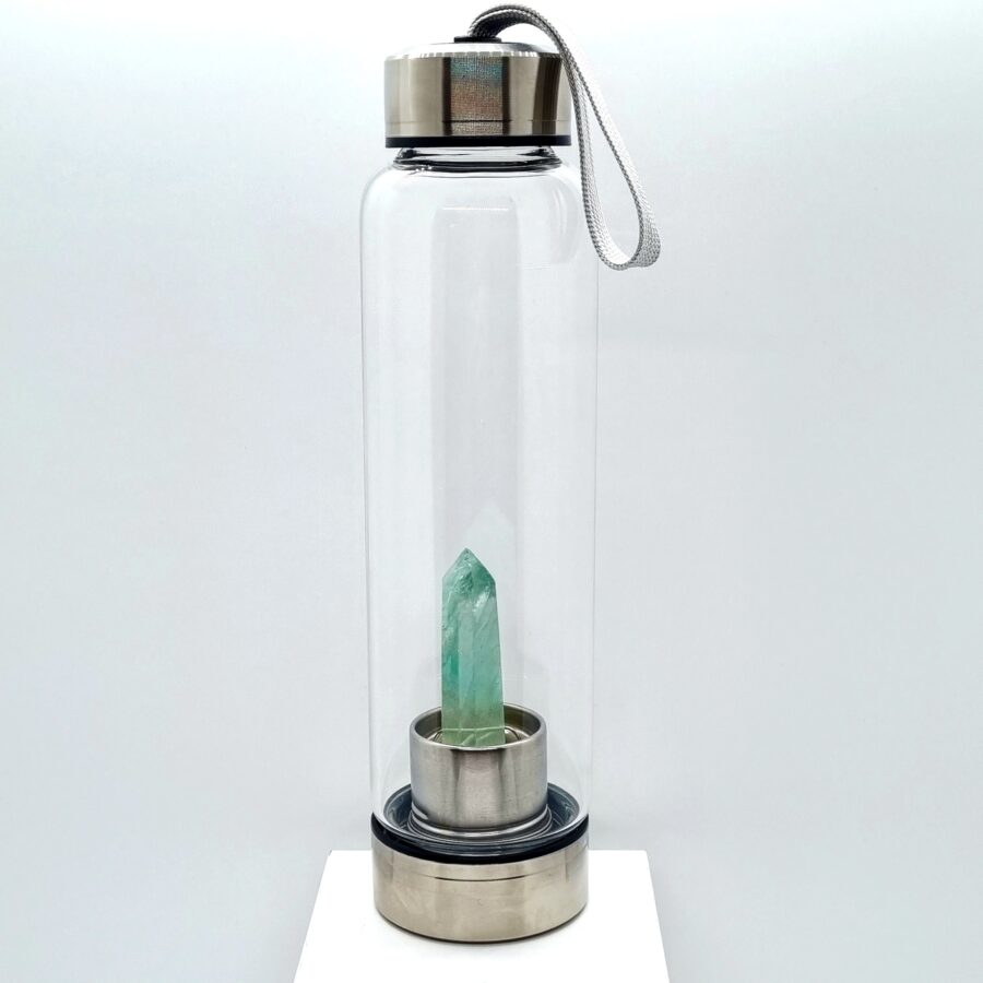 Liečebné sily kameňov sú známe tisíce rokov a dodnes náš svet fascinujú svojou krásou, štruktúrou, vznikom, zložením ale aj energetickou silou. Liečivé kryštály, ponorené na niekoľko hodín do vody, jej odovzdajú svoju liečivú energetickú vibráciu. Vodu potom vypijete alebo ju môžete použiť v rozprašovači k očiste priestoru, či potieraniu na koži. Kryštály jednak zlepšujú kvalitu pitnej vody, jej chuť býva svieža a lahodná, navyše ju tiež uchovávajú dlhodobo čerstvú. Sklenená fľaša je navyše v praktickom obale a môžete ju mať neustále pri sebe.