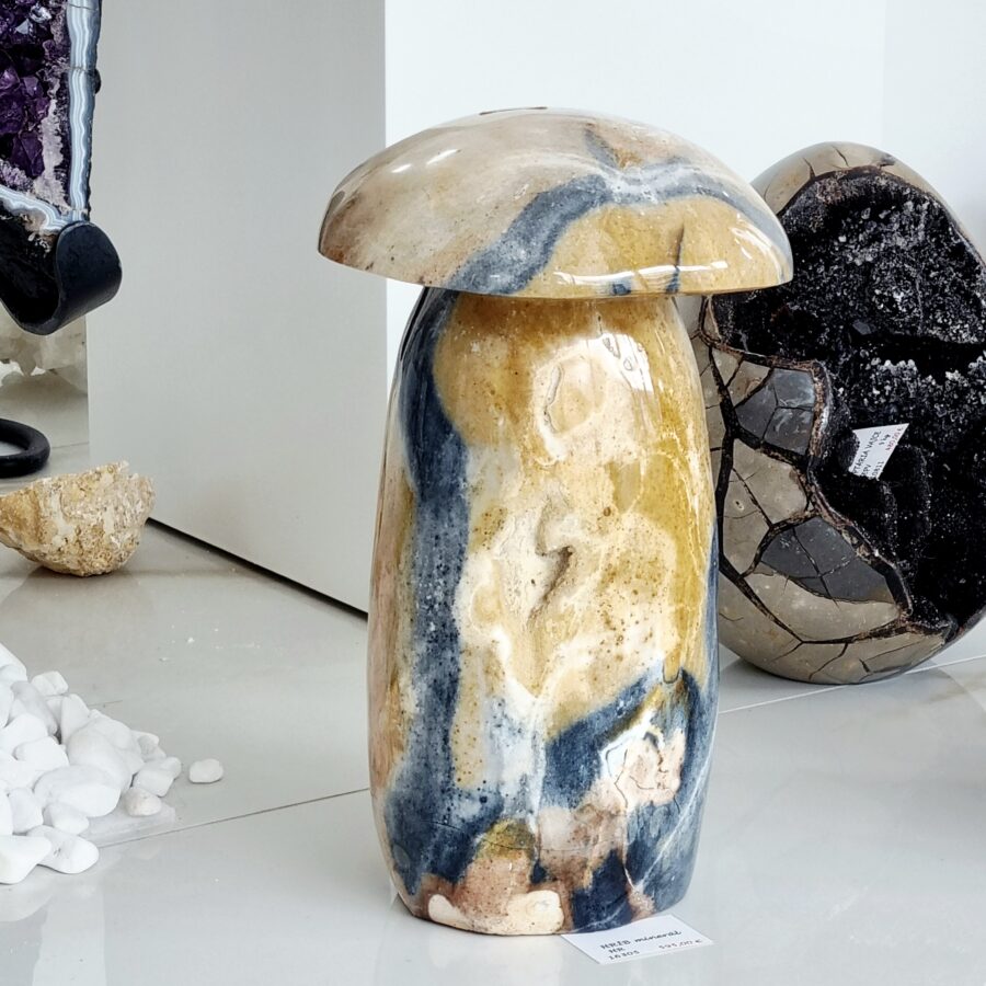 Prineste výživnú energiu do svojho priestoru pomocou hríbika z Jaspisu. Táto magická hríbová rezba nám pripomína, aby sme sa starali o naše spojenie s matkou Zemou. Jaspis využíva vodnú energiu, energiu ticha, tichej sily a čistenia. Stelesňuje nerealizované možnosti. Je poddajný, beztvarý, no zároveň silný. Jaspis je skvelý kameň na pestovanie trpezlivosti a zvládanie zmien. Je to liečivý kameň, ktorý odstraňuje extrémne negatívne emócie a nahrádza ich tendenciami k láskavosti a súcitu.