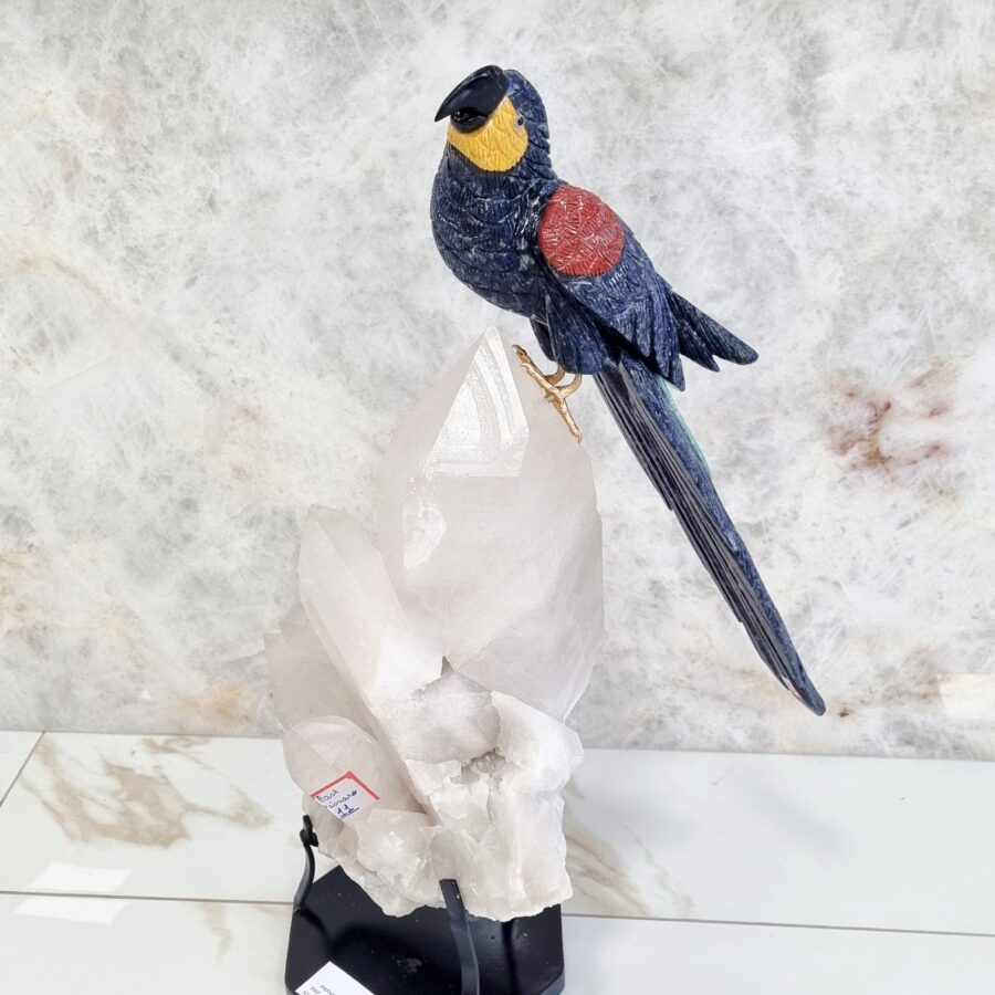 Materiál: Sodalit, základňa Krištáľ + kovový stojan