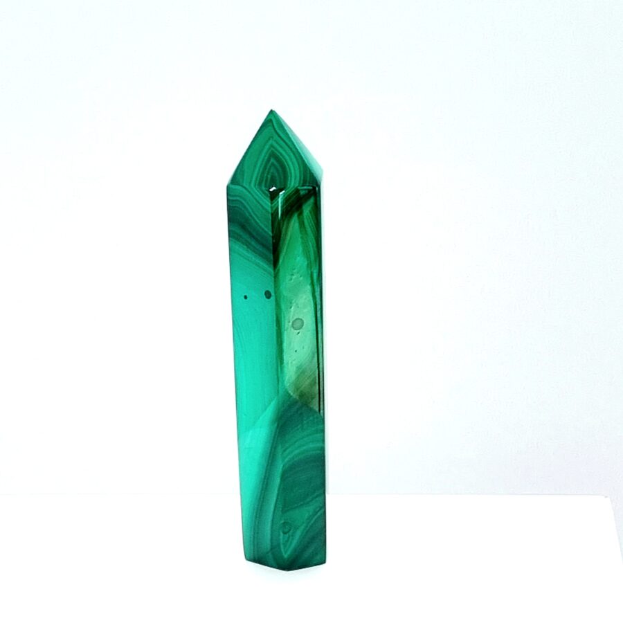Malachit ochranný kameň pohlcuje znečisťujúce látky z tela aj okolia, čistí čakry. Podporuje detoxikáciu pečene, zmierňuje bolesti kĺbov, artritídu, astmu a menštruačné kŕče. Harmonizuje emócie, pomáha prekonávať strach, fóbie a podporuje sebavedomie. Zvyšuje kreativitu, intuíciu a pomáha pri rozhodovaní. Malachit je citlivý, nečistite ho soľou ani vodou. Odporúča sa čistiť ho na hematite alebo len vyleštiť suchou handričkou. Nabíja sa na nepriamom slnečnom svetle alebo pri mesačnom svite.