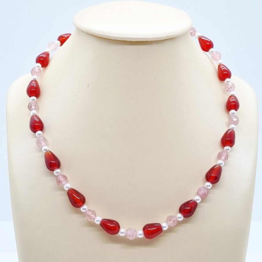 • Karneol, Kremeň jahodový, Perla náhrdelník