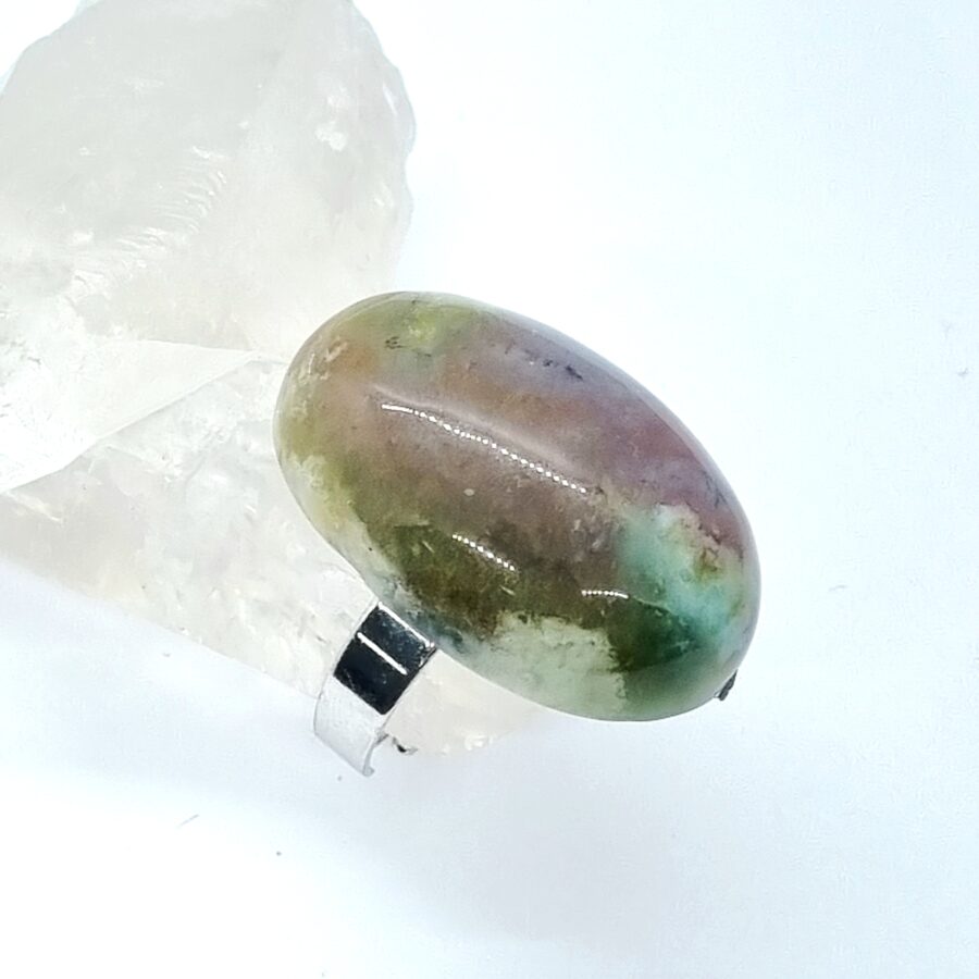 Elegantný nastaviteľný prsteň je vyrobený z nerezovej ocele a minerálu Achát.