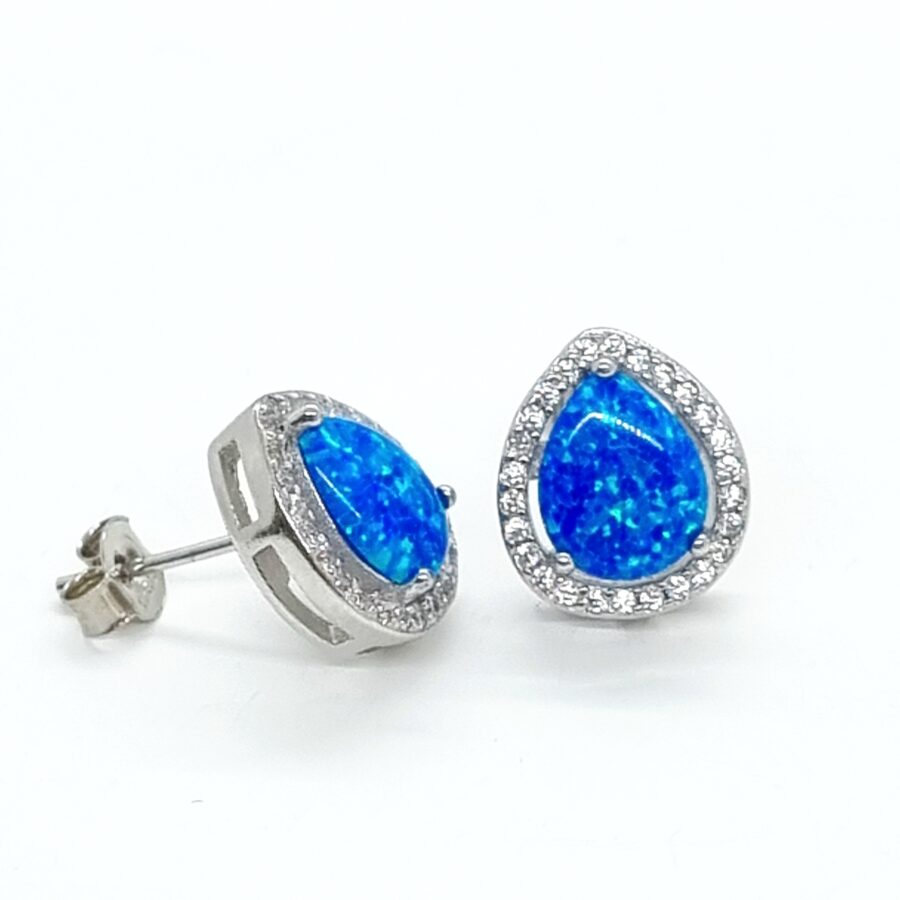 Krásne strieborné náušnice z Opálu modrého, vhodné na každodenné nosenie. Zapínanie náušníc je na klasický zaklápací patent.