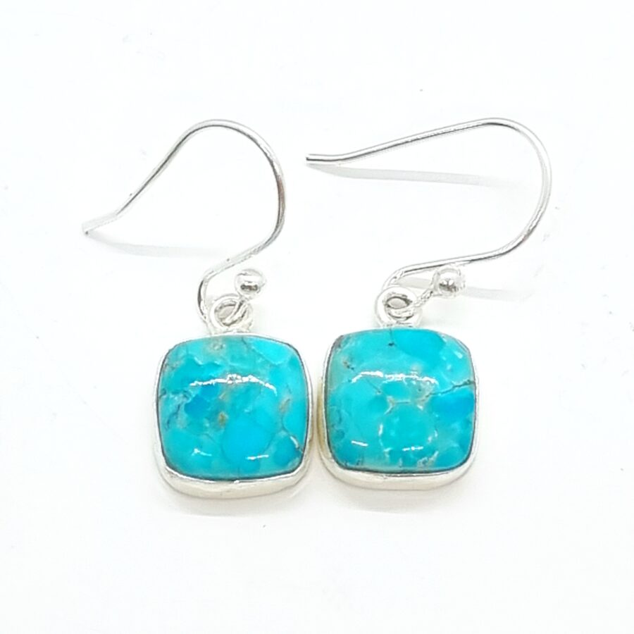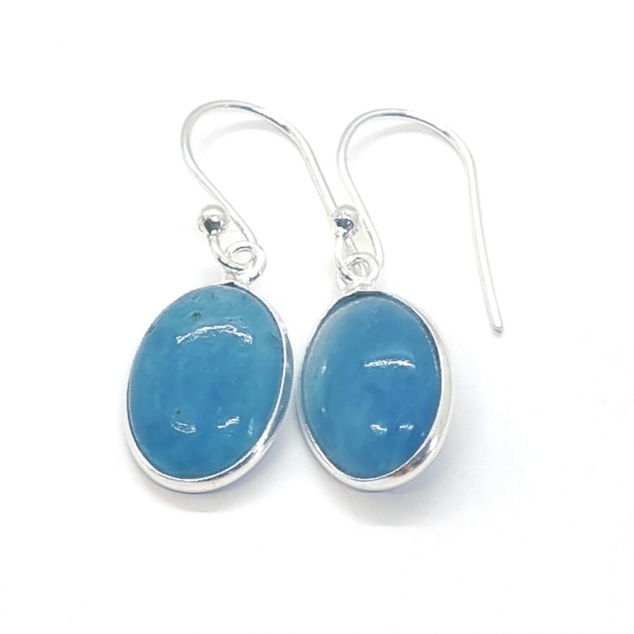 Krásne strieborné náušnice z Opálu modrého, vhodné na každodenné nosenie. Zapínanie náušníc je na klasický zaklápací patent.