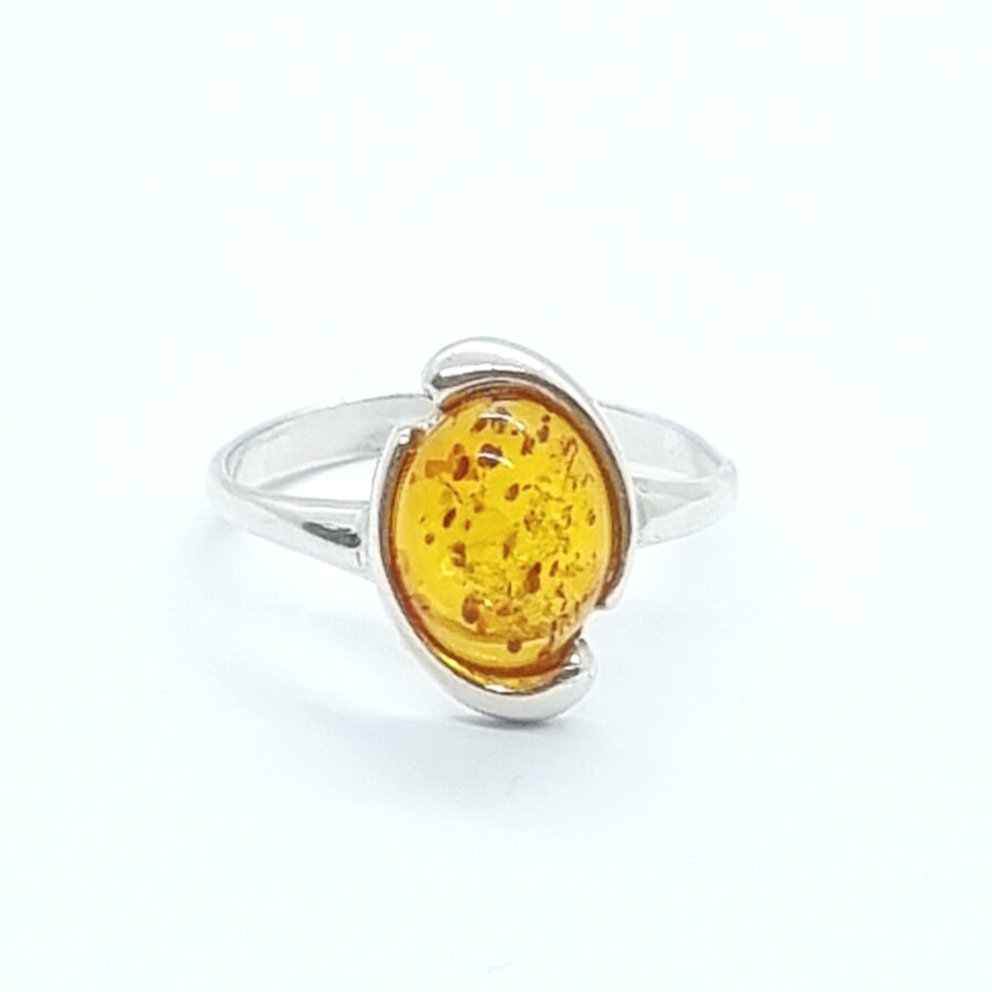 Krásny dámsky strieborný prsteň s jantárom. Prsteň je vyrobený zlatníckou technikou zo striebra Ag 925 /1000. Osadený je krásny kúsok Jantáru v tvare oválu.